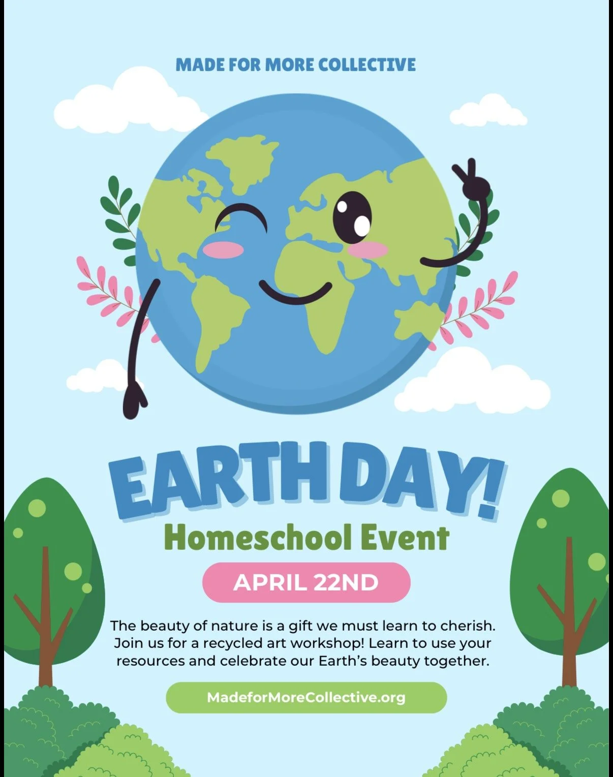 Join us this Earth Day for a fun filled art workshop where students will learn how to use resources wisely while creating something new and meaningful! ๐๐จ